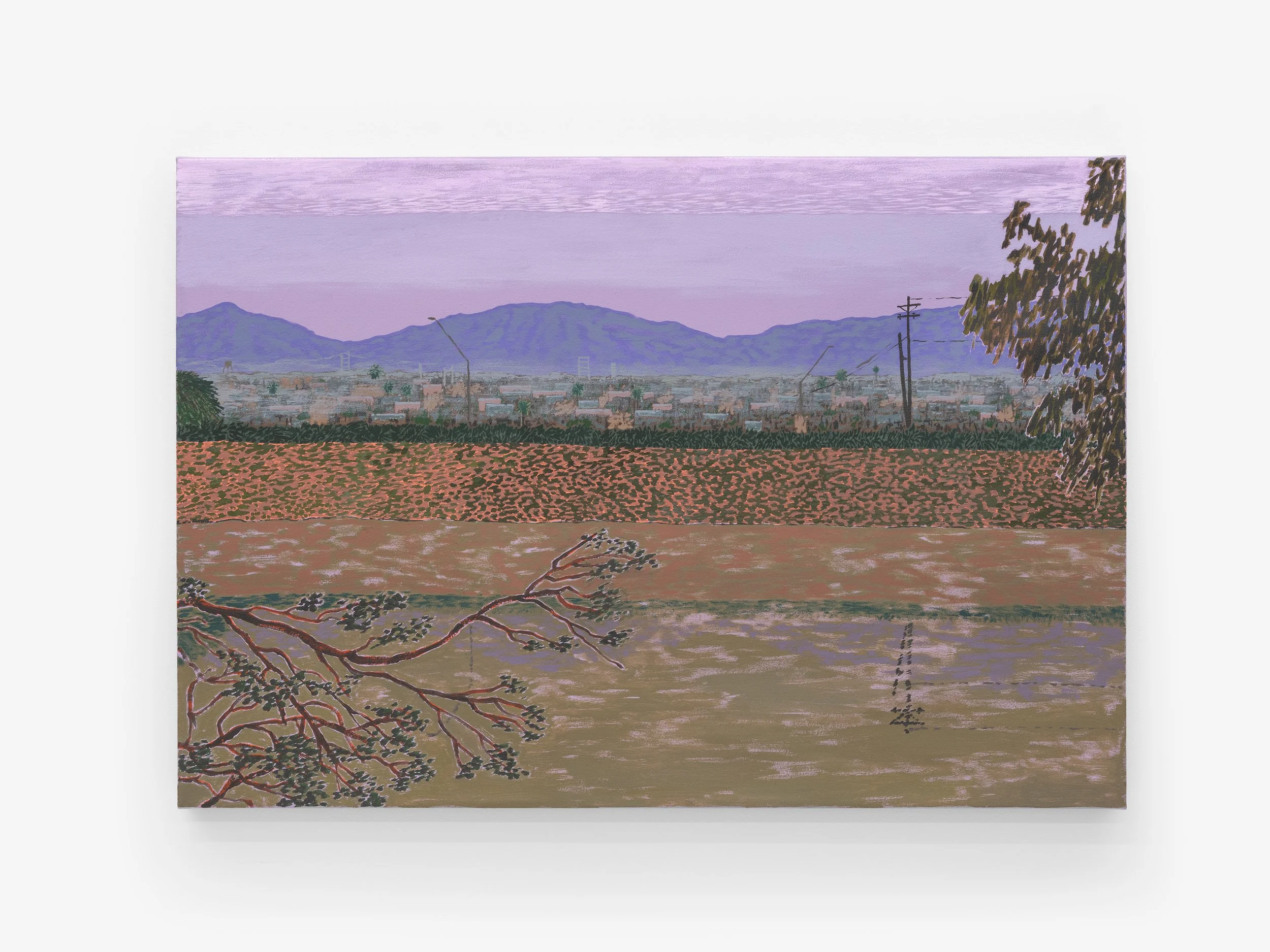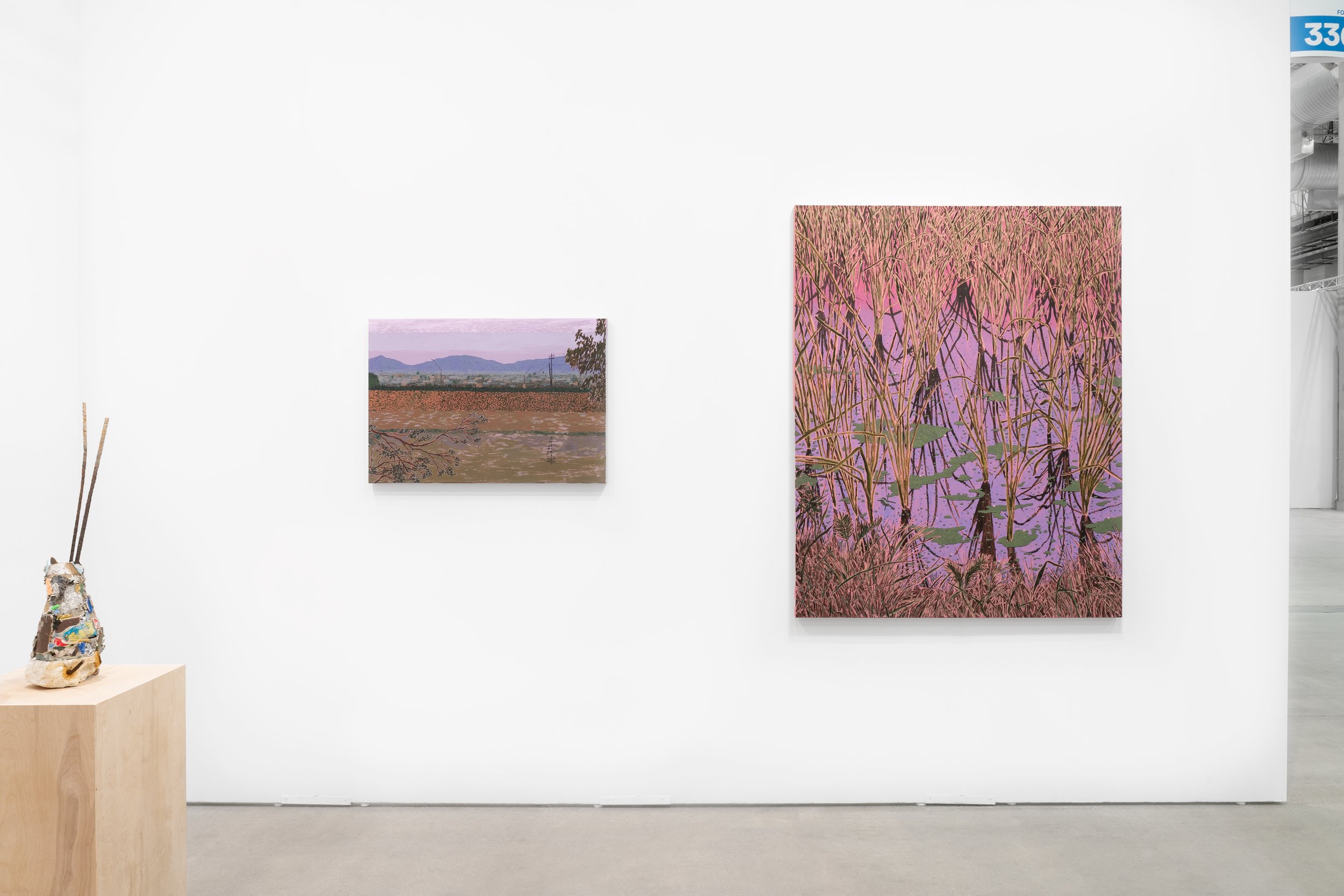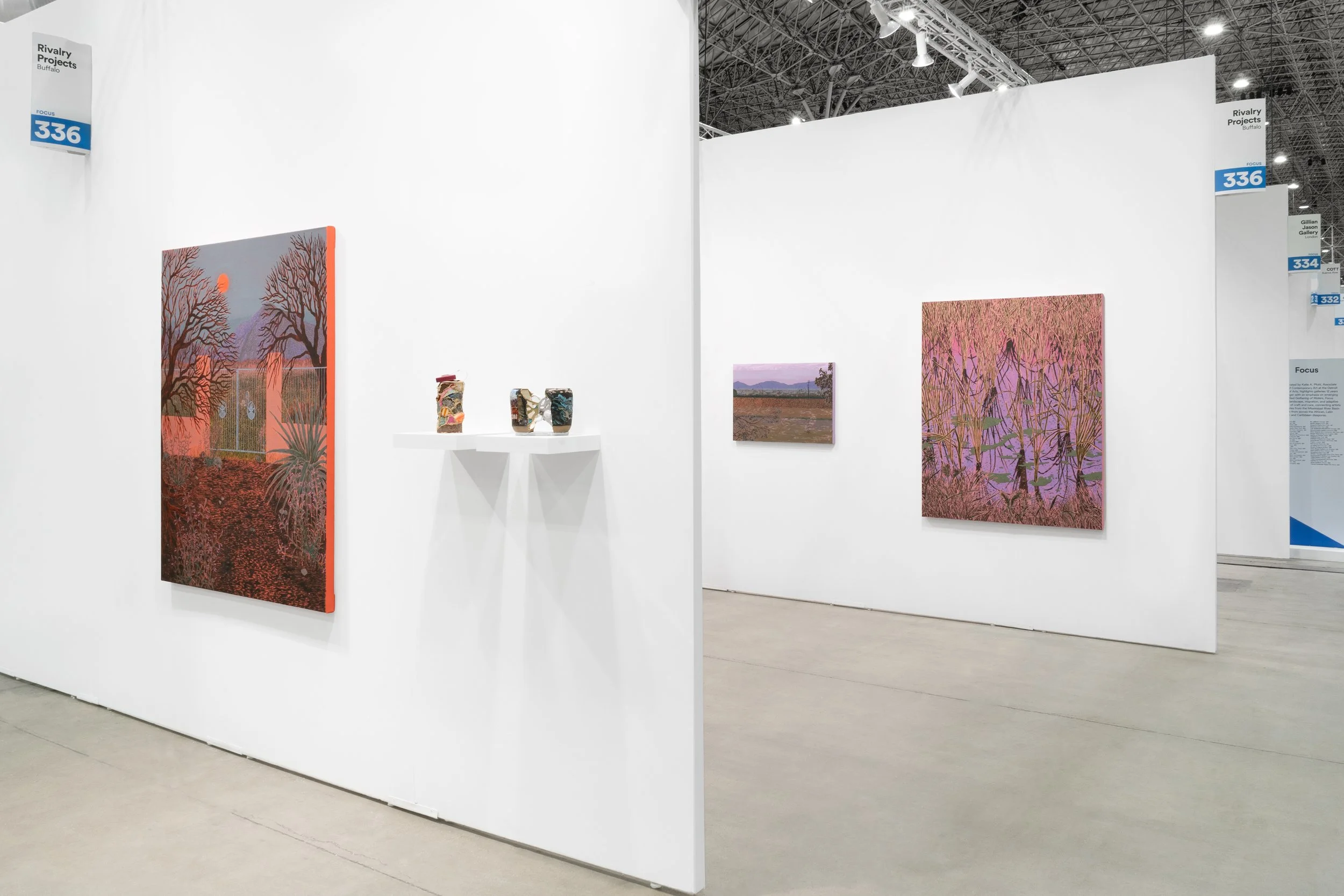 Rendered in their signature jewel tones, their work creates a faulty illusion of calm, and, yet, a helicopter hovers in the water's reflection or mosquitos buzz close to stagnant surfaces. There is a palpable tension, as if we are witness to the calm before the proverbial storm.