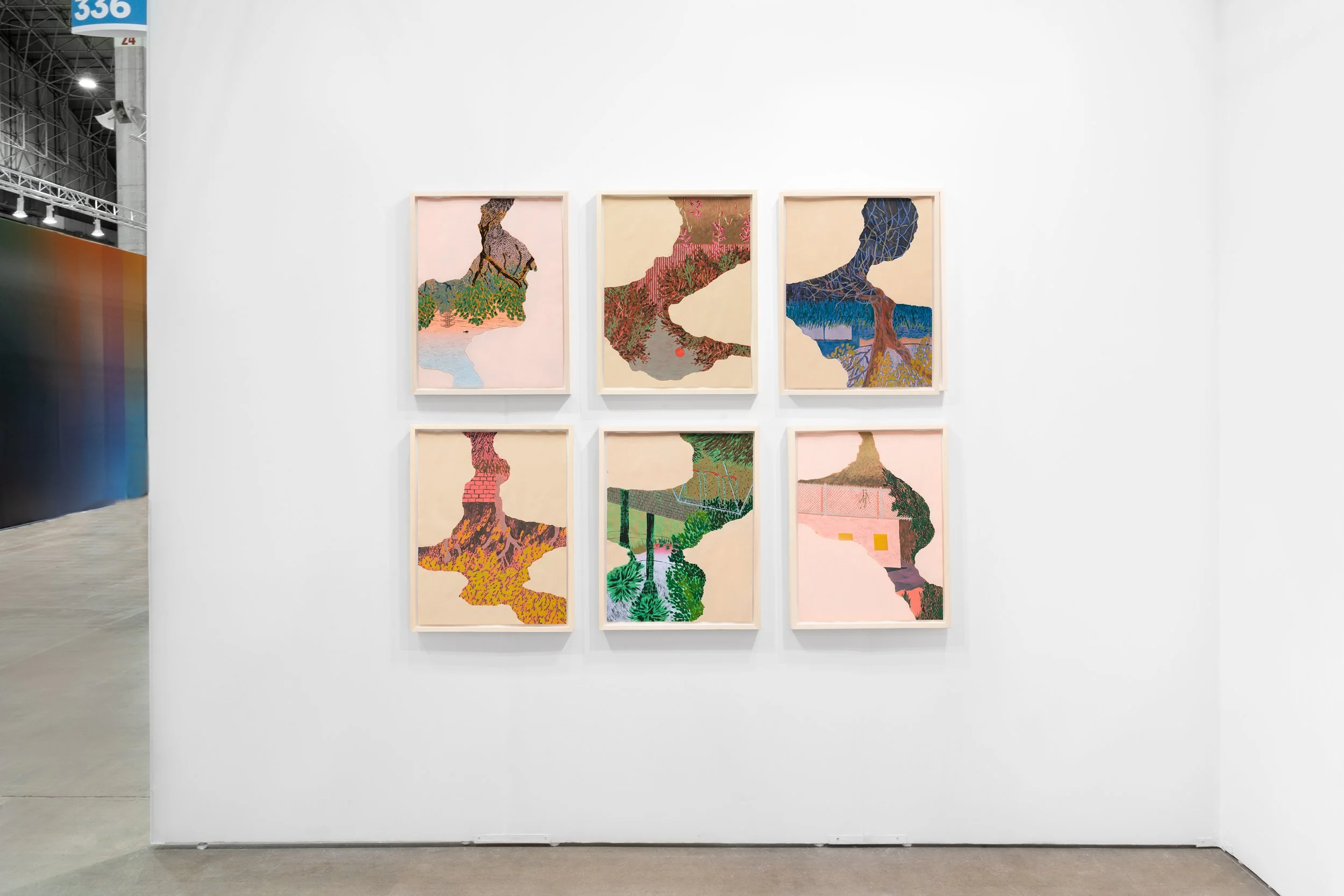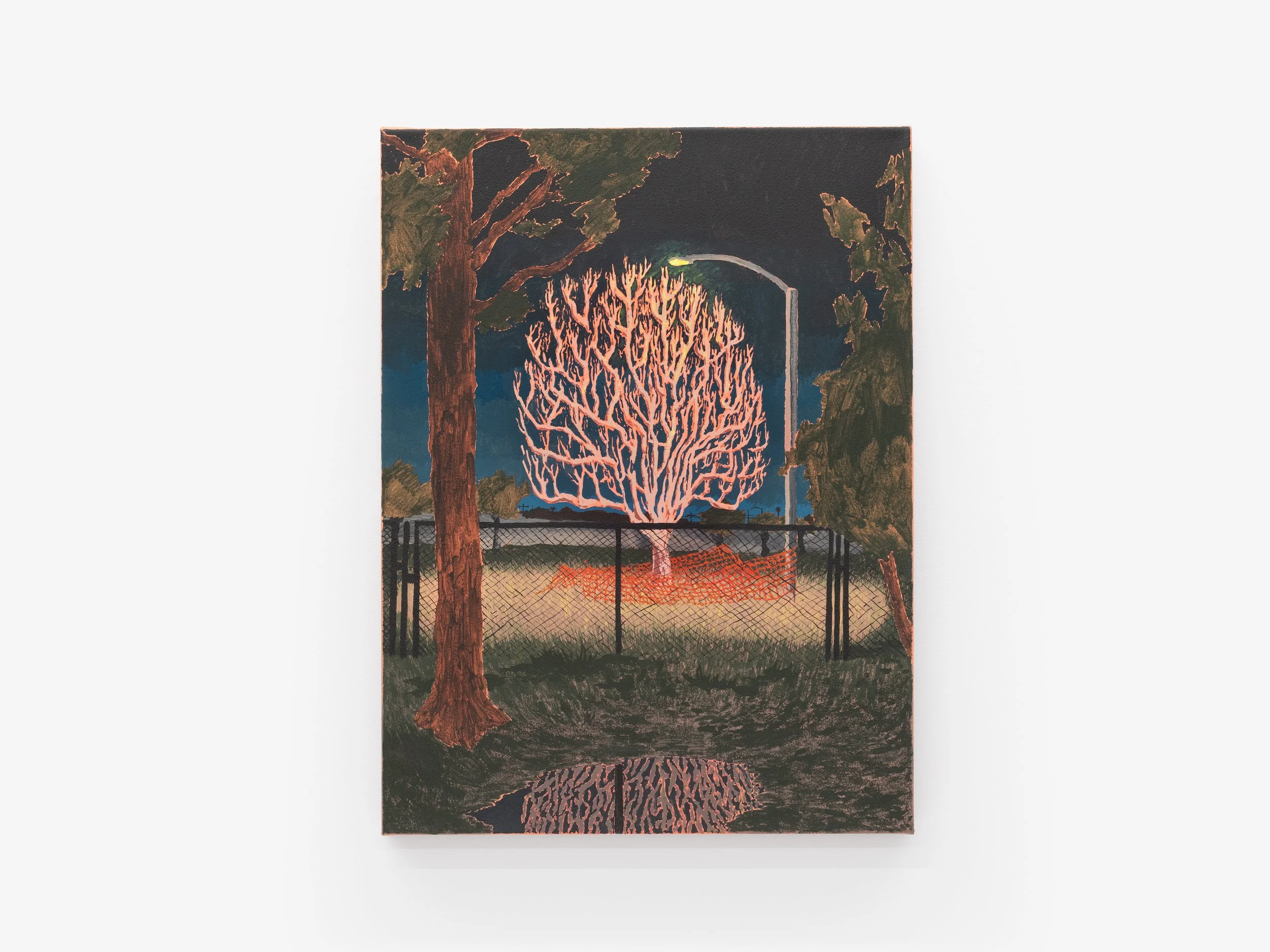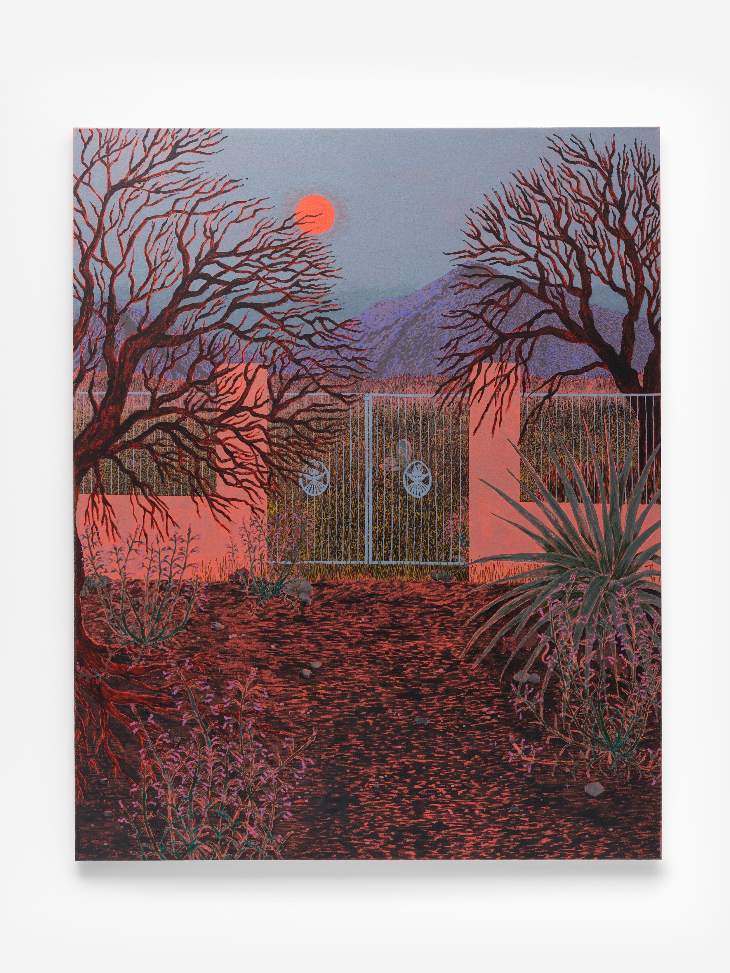 Rendered in their signature jewel tones, their work creates a faulty illusion of calm, and, yet, a helicopter hovers in the water's reflection or mosquitos buzz close to stagnant surfaces. There is a palpable tension, as if we are witness to the calm before the proverbial storm.