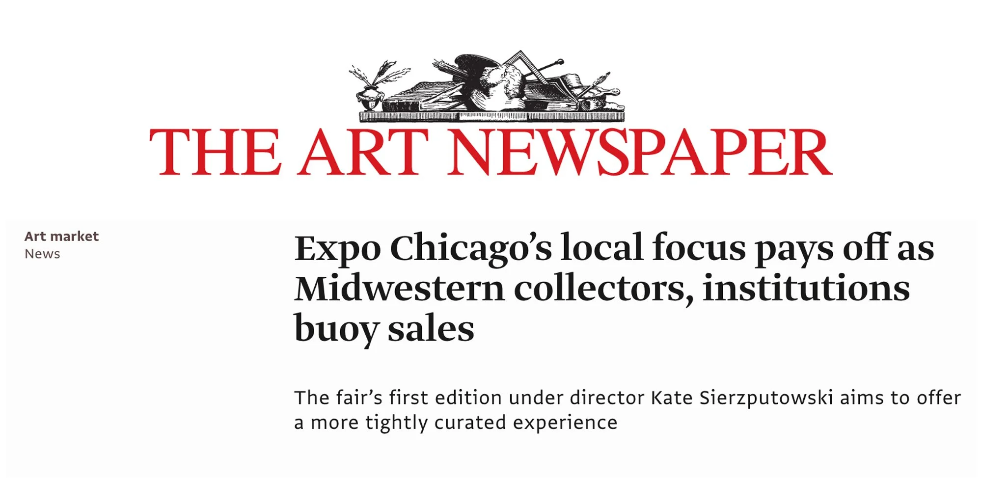 Thrilled to be included in Ben Sutton’s The Art Newspaper’s article about EXPO Chicago. Including an excerpt below with includes a quote by gallery director, Olivia McManus. Including link below and text from the full article.
