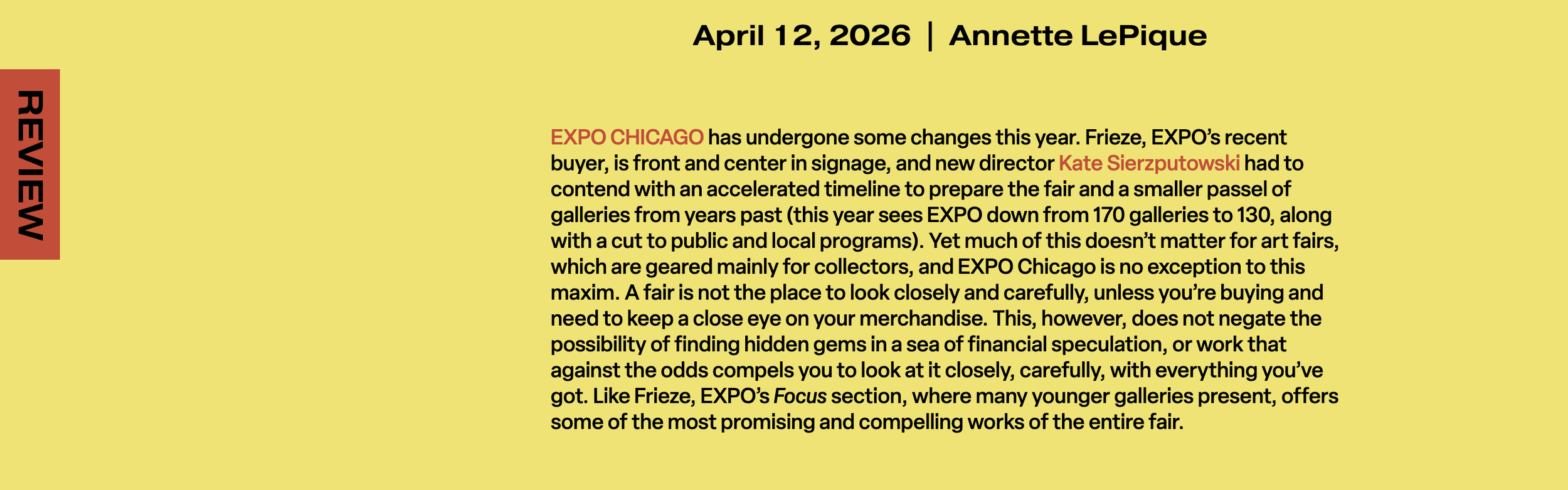A big thank you to Annette LePigue for including Rivalry Projects in her review of EXPO Chicago for Impulse Magazine. We are highlighting the review about rocki’s work below and linking to the full review here.